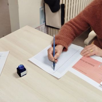 En toute simplicité, nous essaierons de maîtriser un peu cet art magique. Position de la main, poignet, placement d ela feuille, préparation du calame etc.
