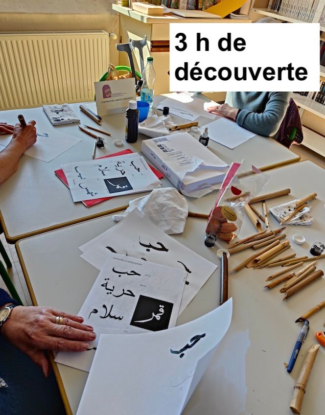 répétiton d'un motif simple, tenue du calame, savoir respirer et évaluer son geste pour enfin calligraphier le mot AMOUR !