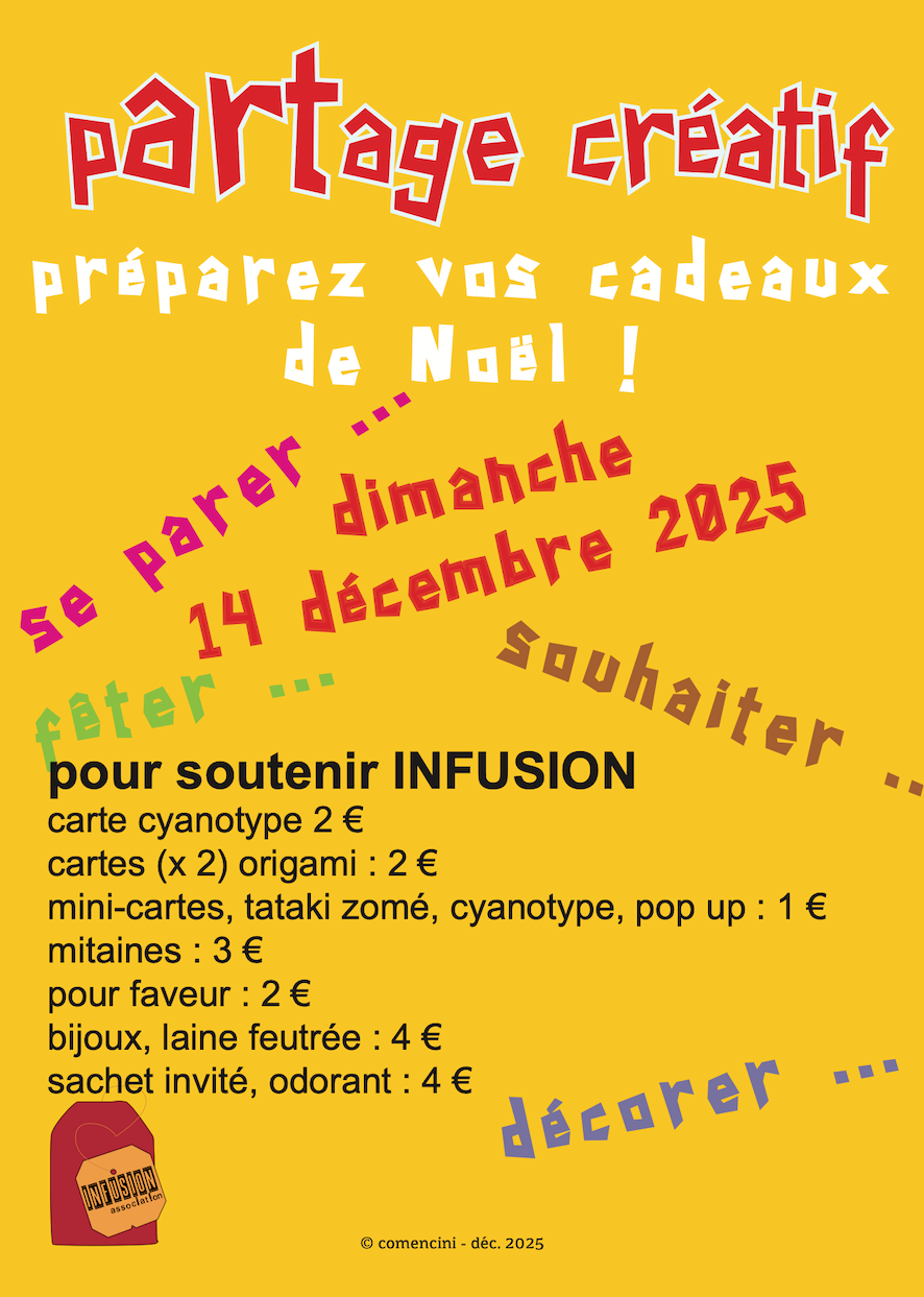 Infusion y tiendra un stand avec ses créations. Venez nombreux !