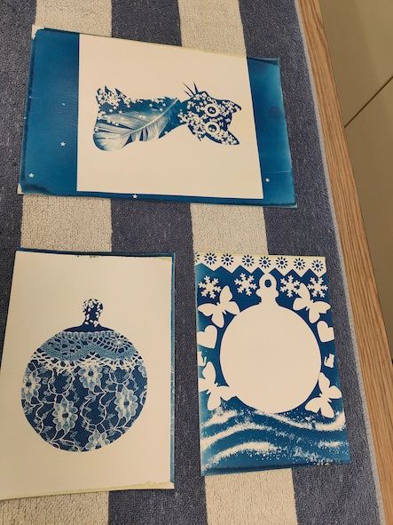réalisation de cartes A5, aux Jardins d'Adrienne à Fursac avec la technique du cyanotype.