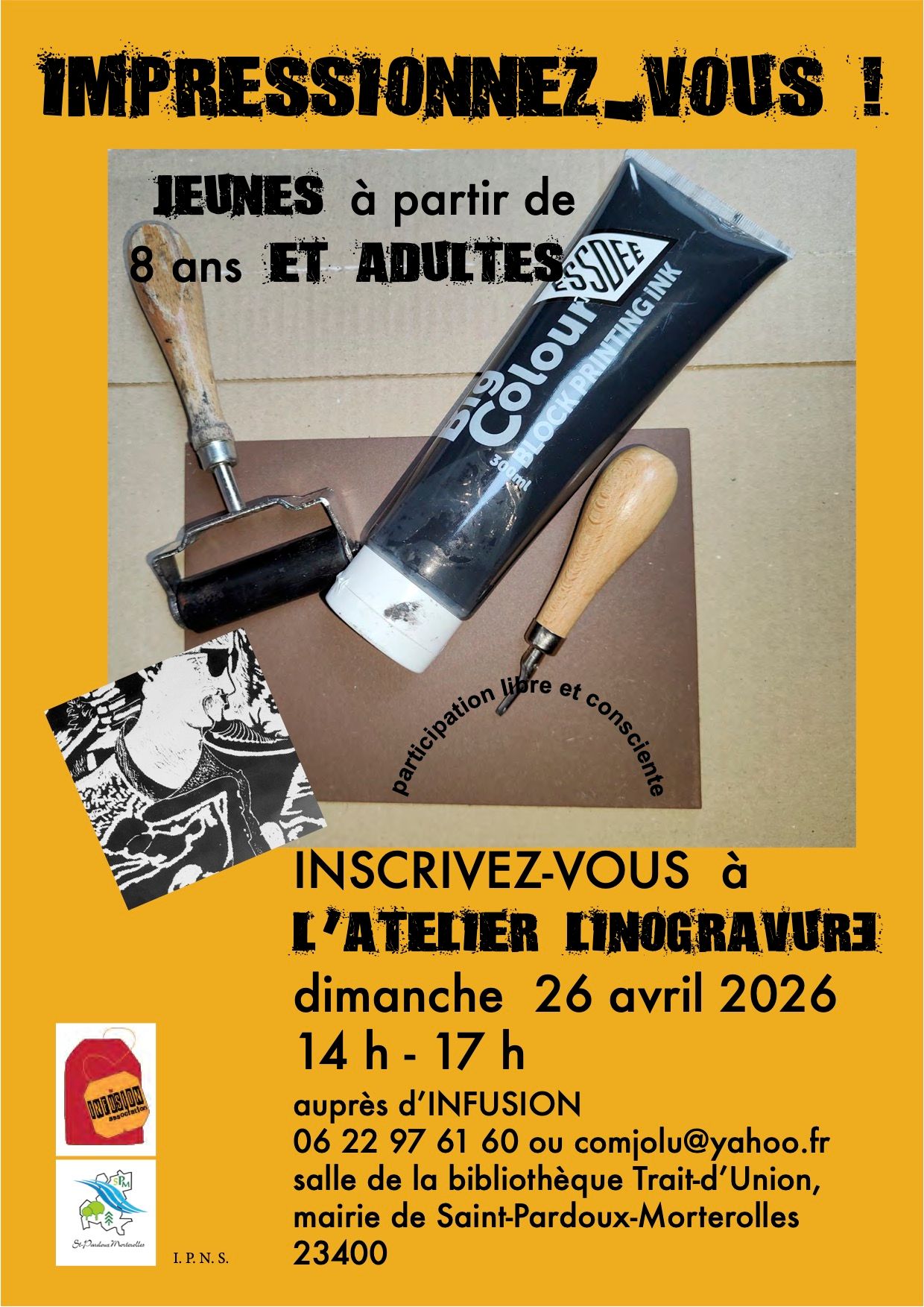 l'atelier linogravure vous accueillera le 15 avril.