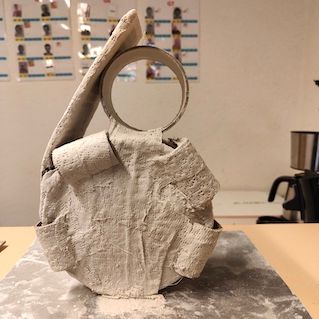 séance 2 : première application des bandes à plâtrer sur la structure en carton