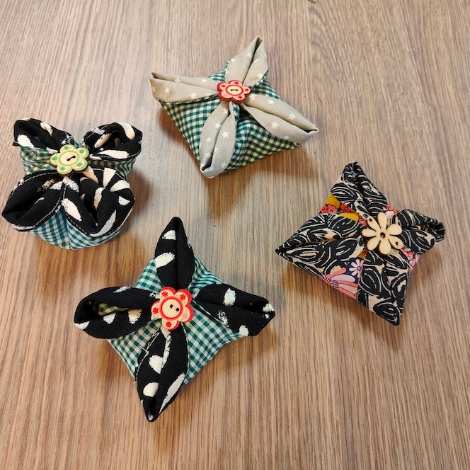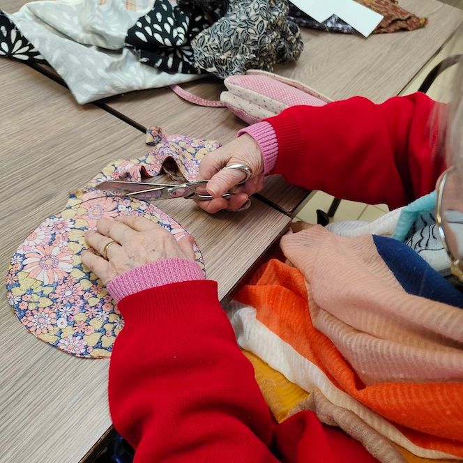 séance repassage, couture autour de la conception de sachets fleurs