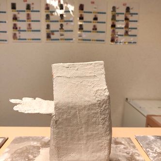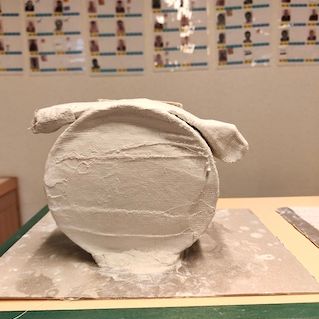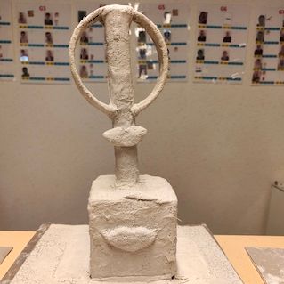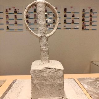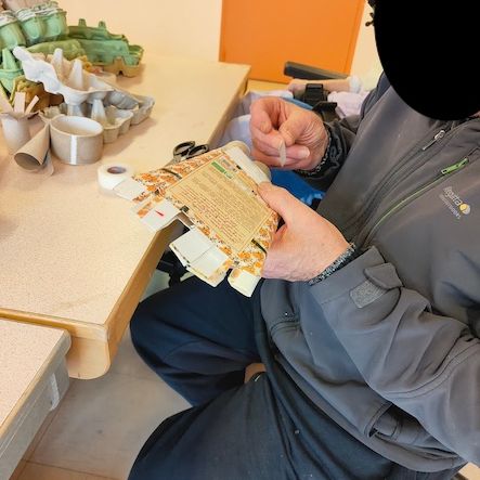 4 résidents ont commencé la strucutre en carton des cératops après avoir pris connaissance d'œuvres d'artistes contemporains ( Delphine Aubry).